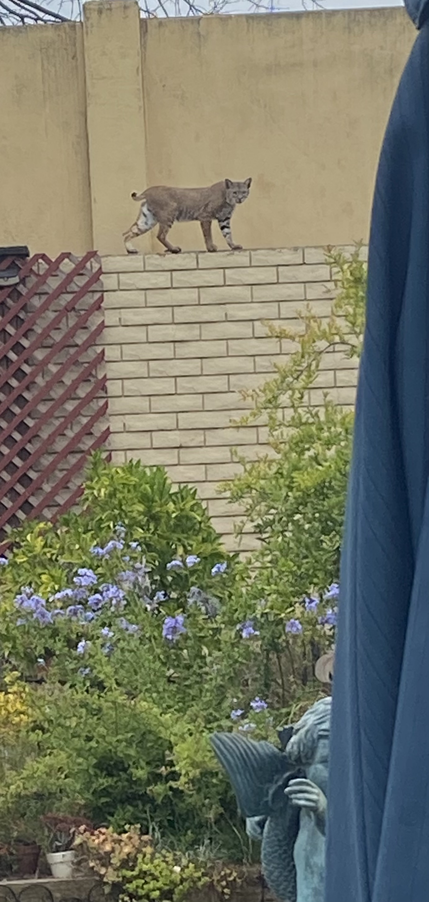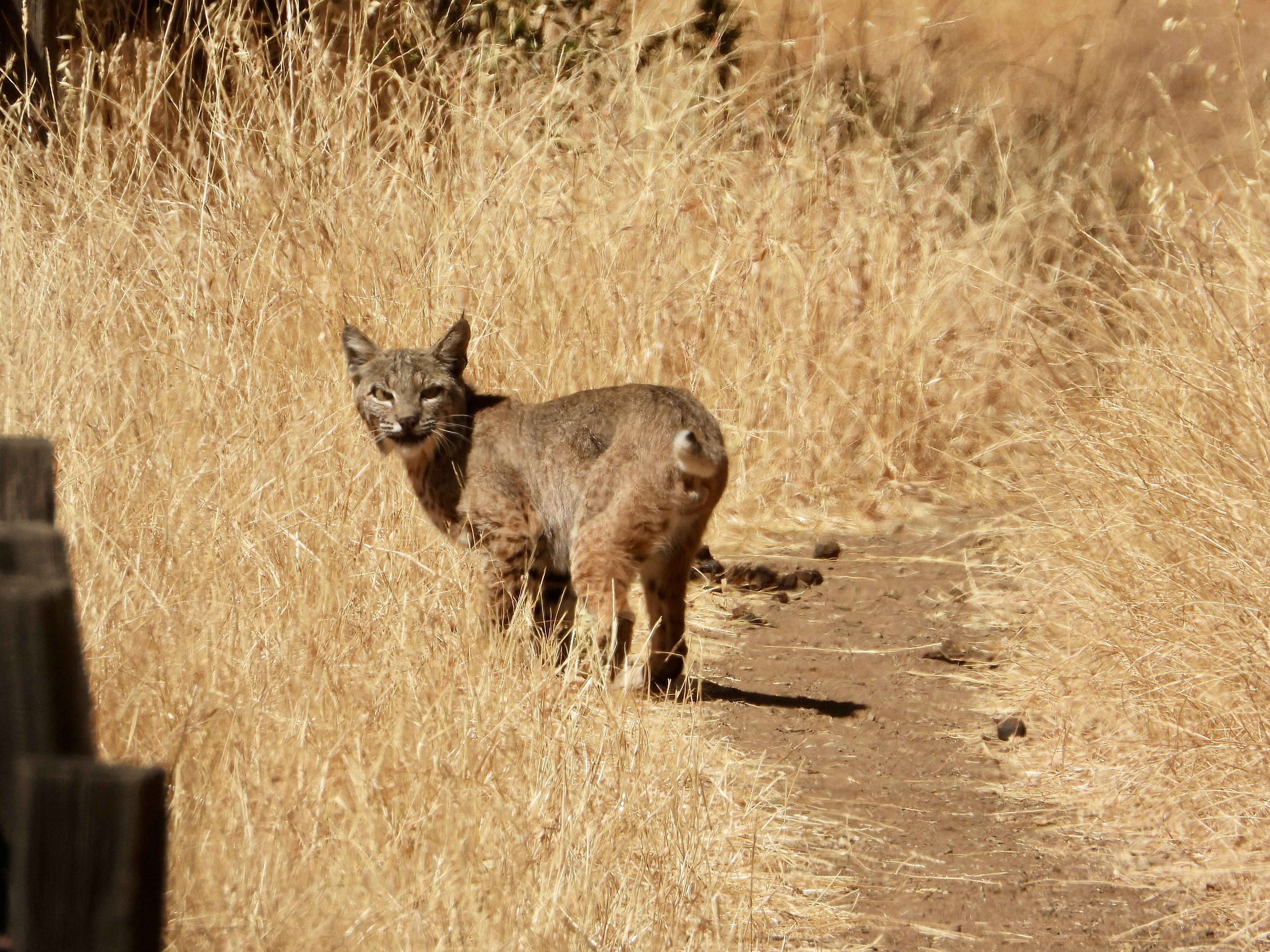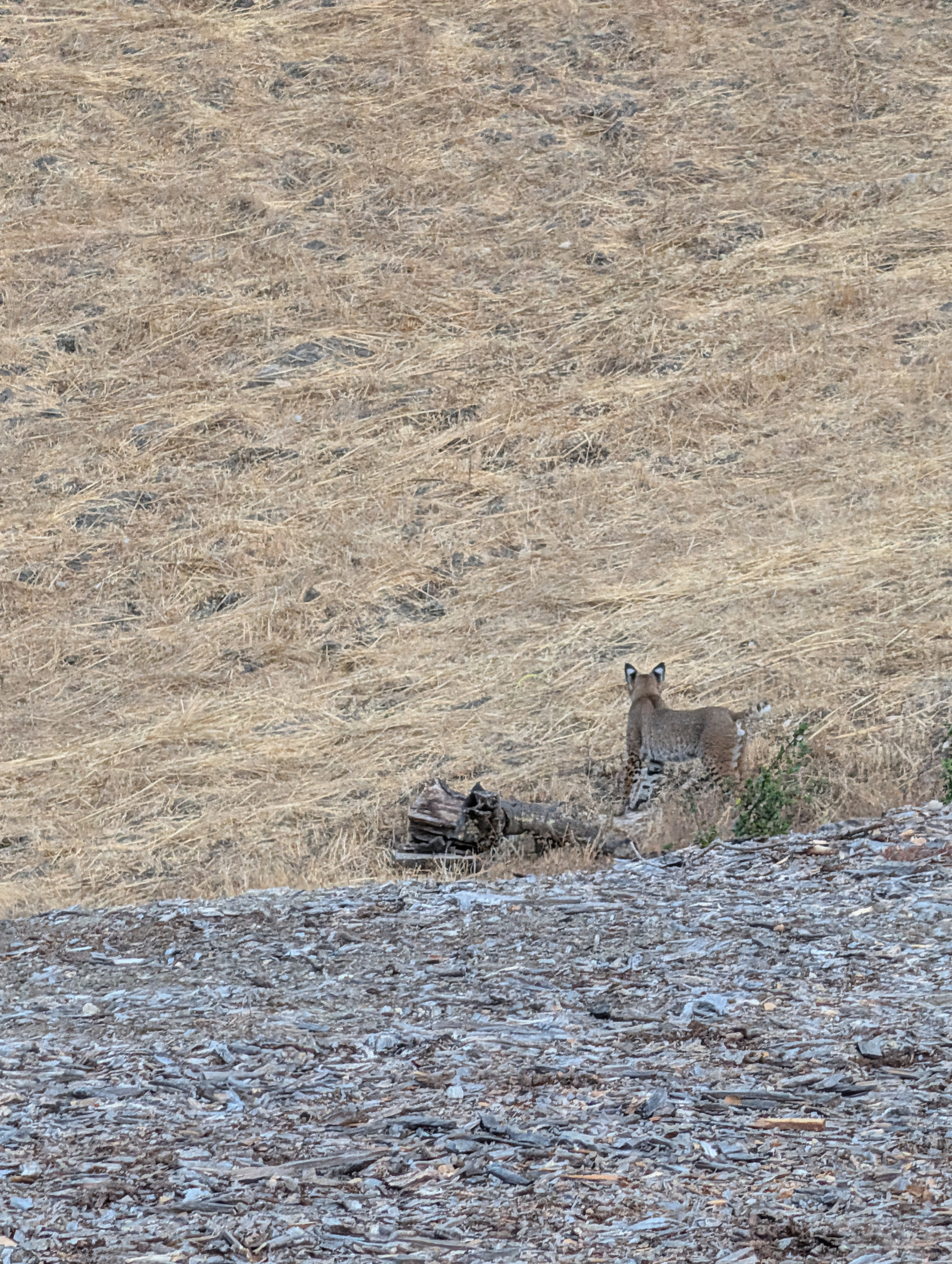 I was jogging up the canyon road and the cat was just off to my left up the embankment. Both paused to check eachother out, then carried on with our days. Wonderful encounter! Also saw turkeys and deer in the area, in the direction the cat was headed.