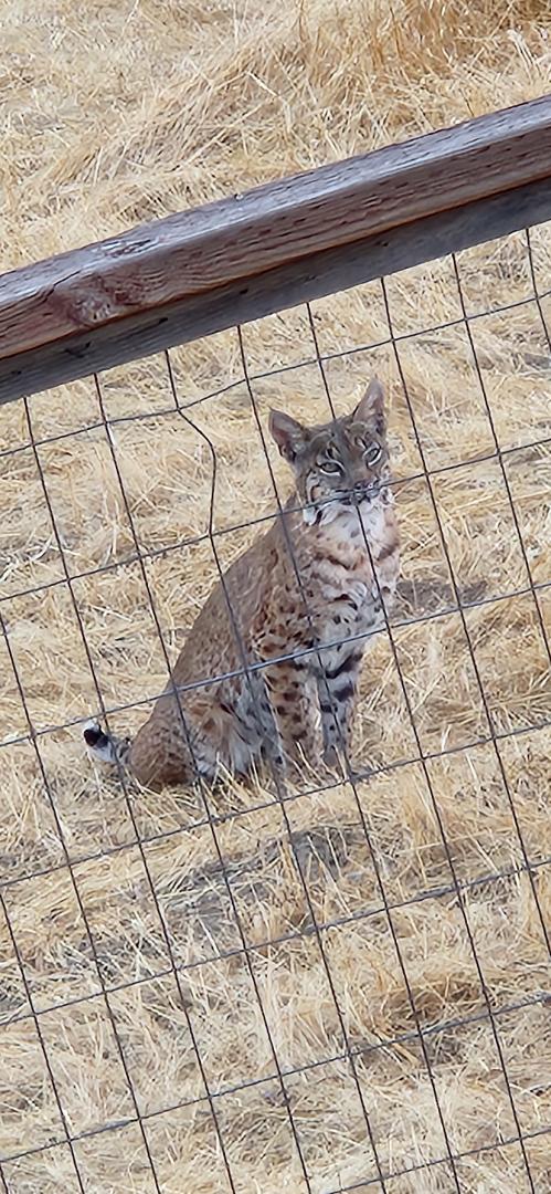 bob cat wandered around outside the fence within the boundary of big canyon park. It sat by the fence for a few minutes and walked back into the canyon