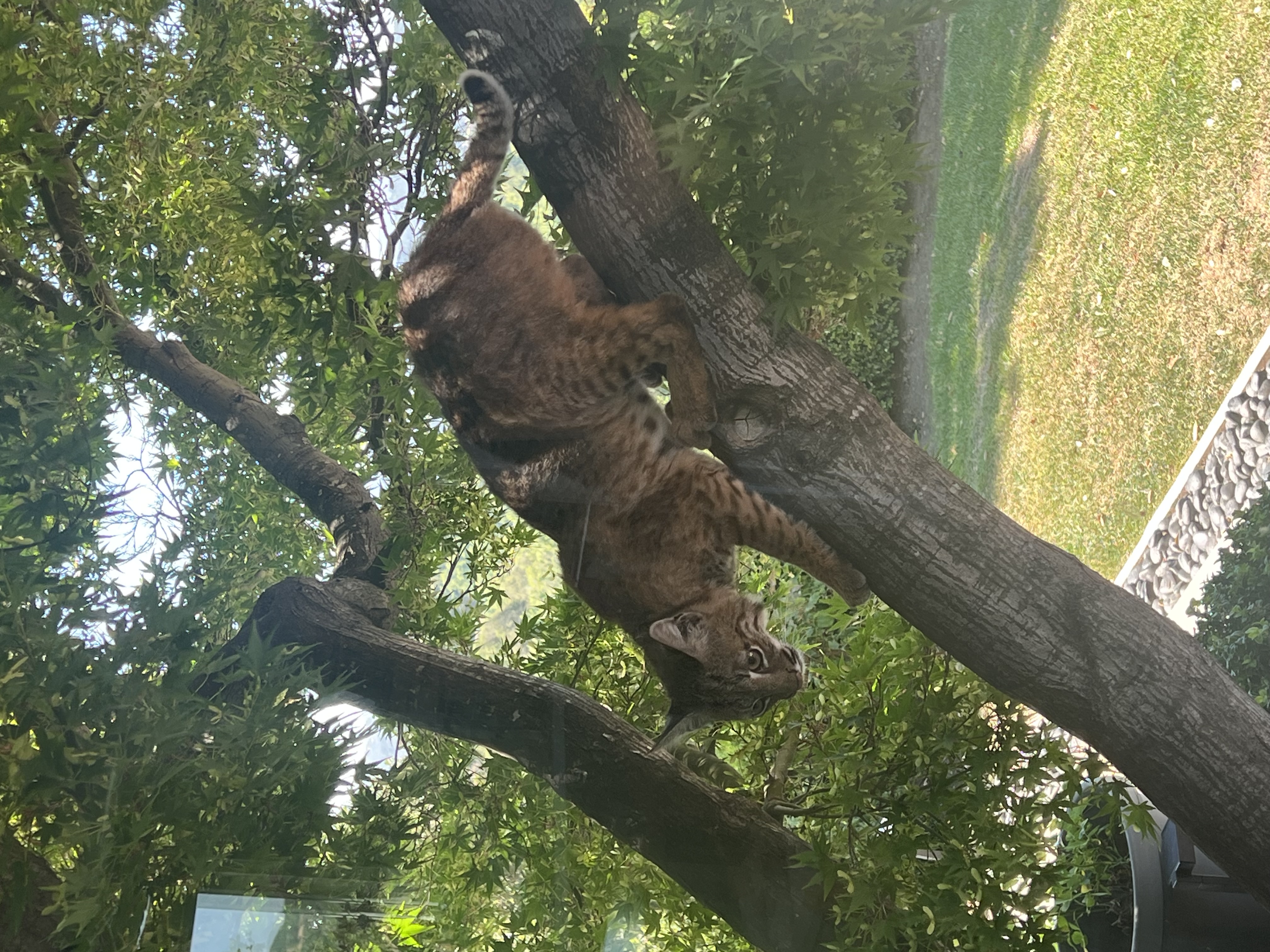 Juvenile Puma in our backyard tree right at our window. It was very curious and not afraid of us or our animals. So beautiful!