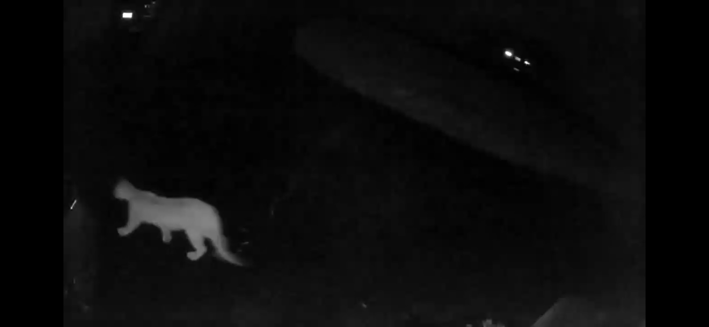 Mountain lion caught on camera walking across driveway. Exact time unknown.