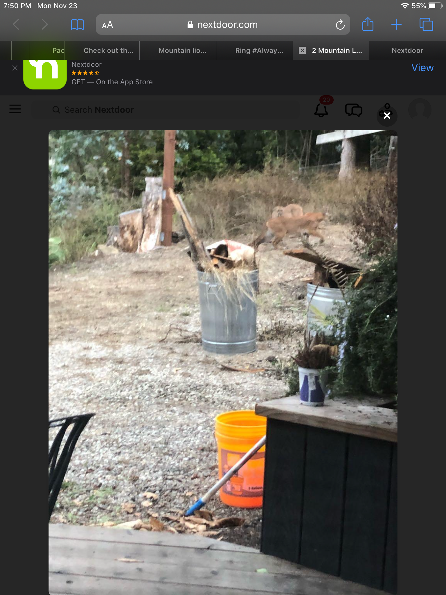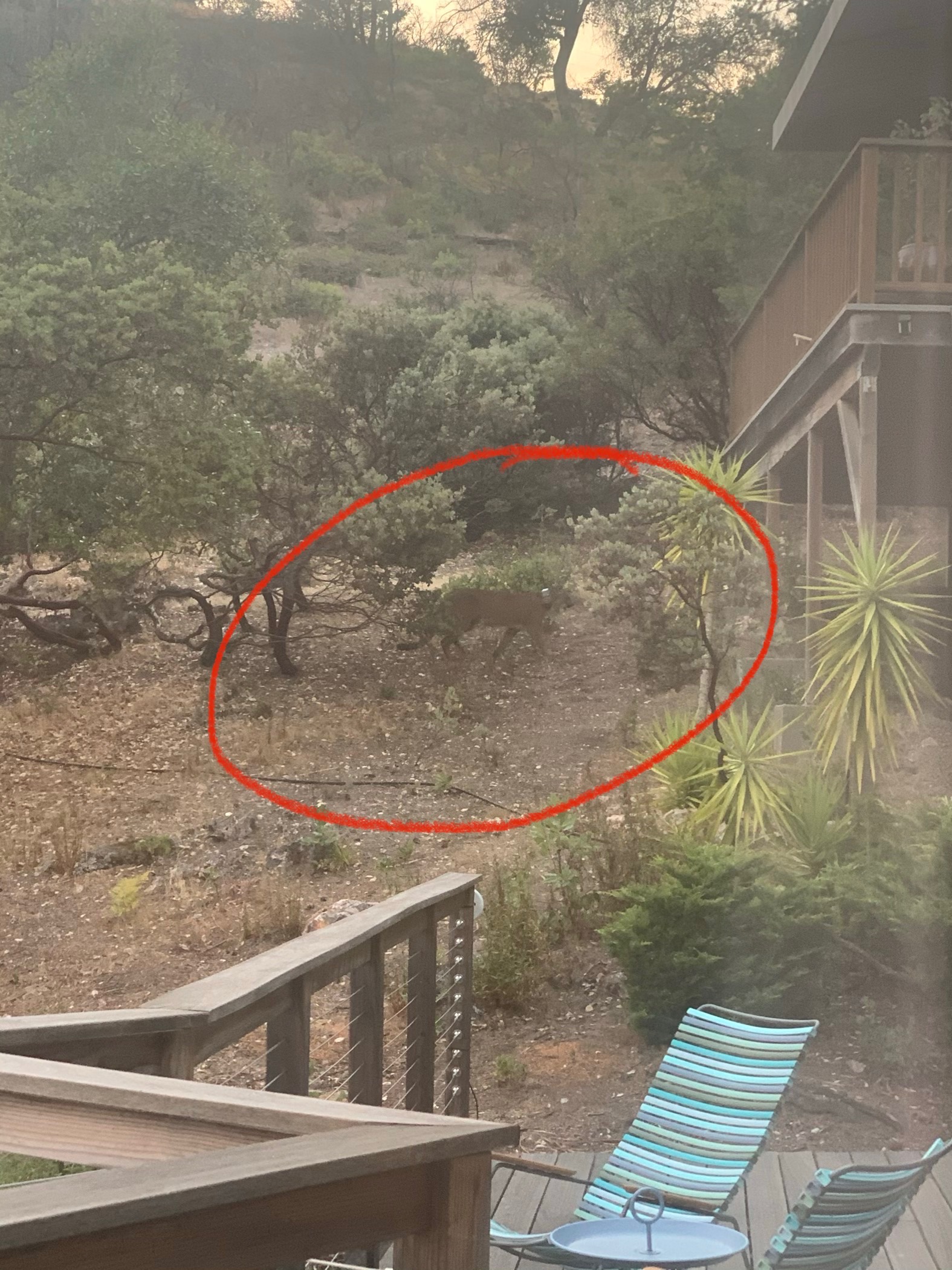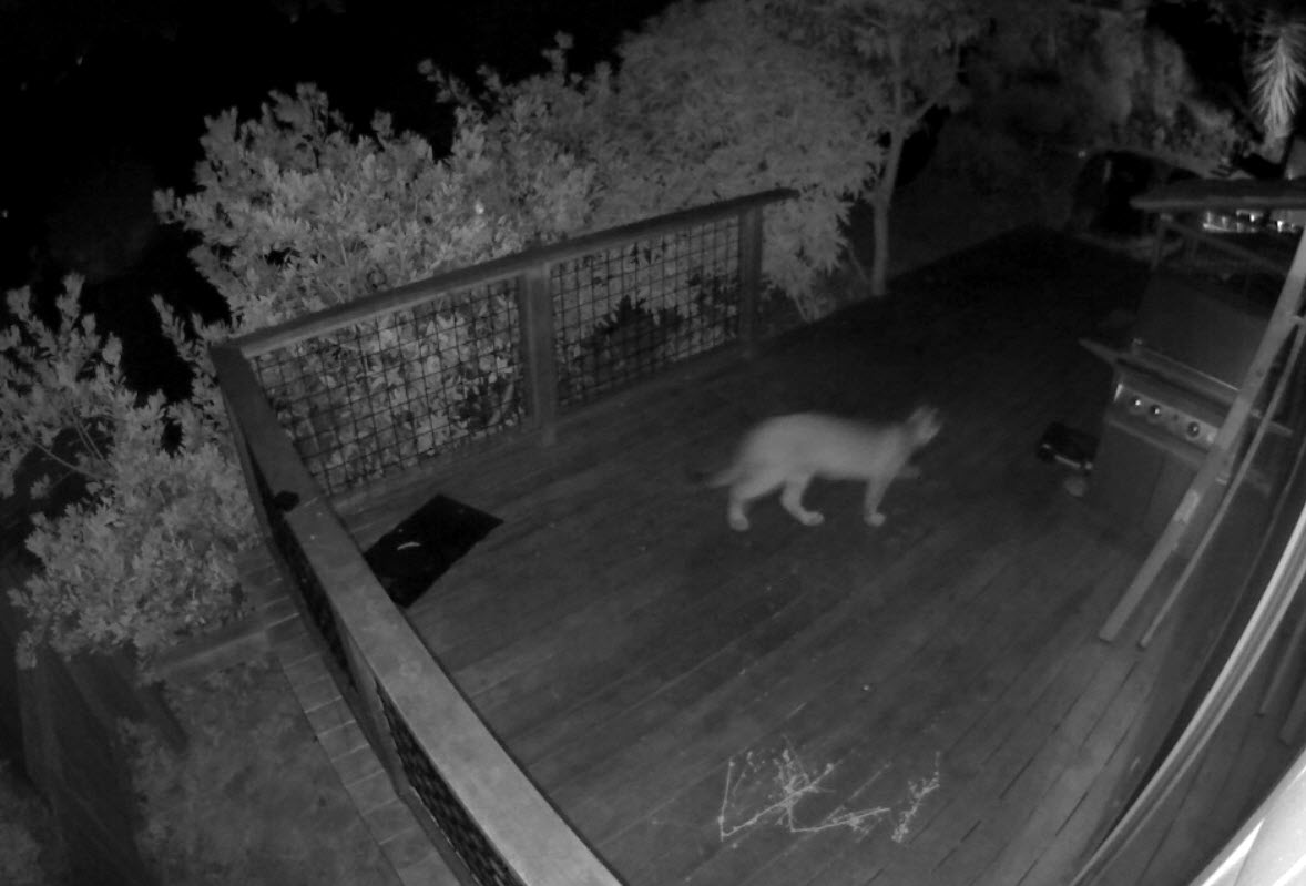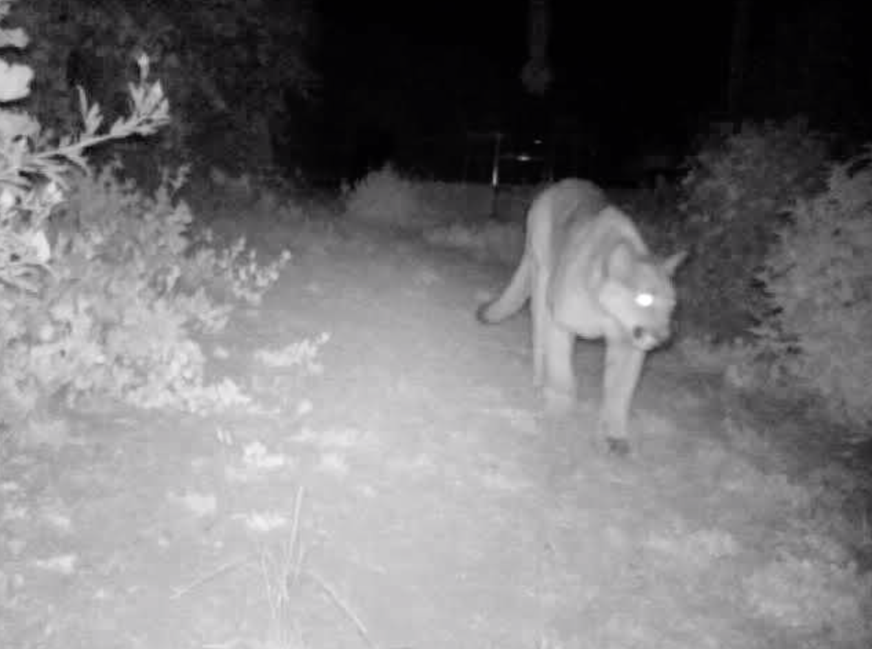 Image of a mountain lion in a backyard. Exact time unknown.