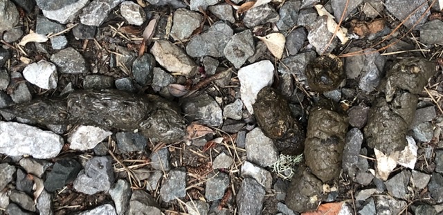Found scat after hearing something by the creek which is running at the time I thought it was the creek. My dog first found the scat.
