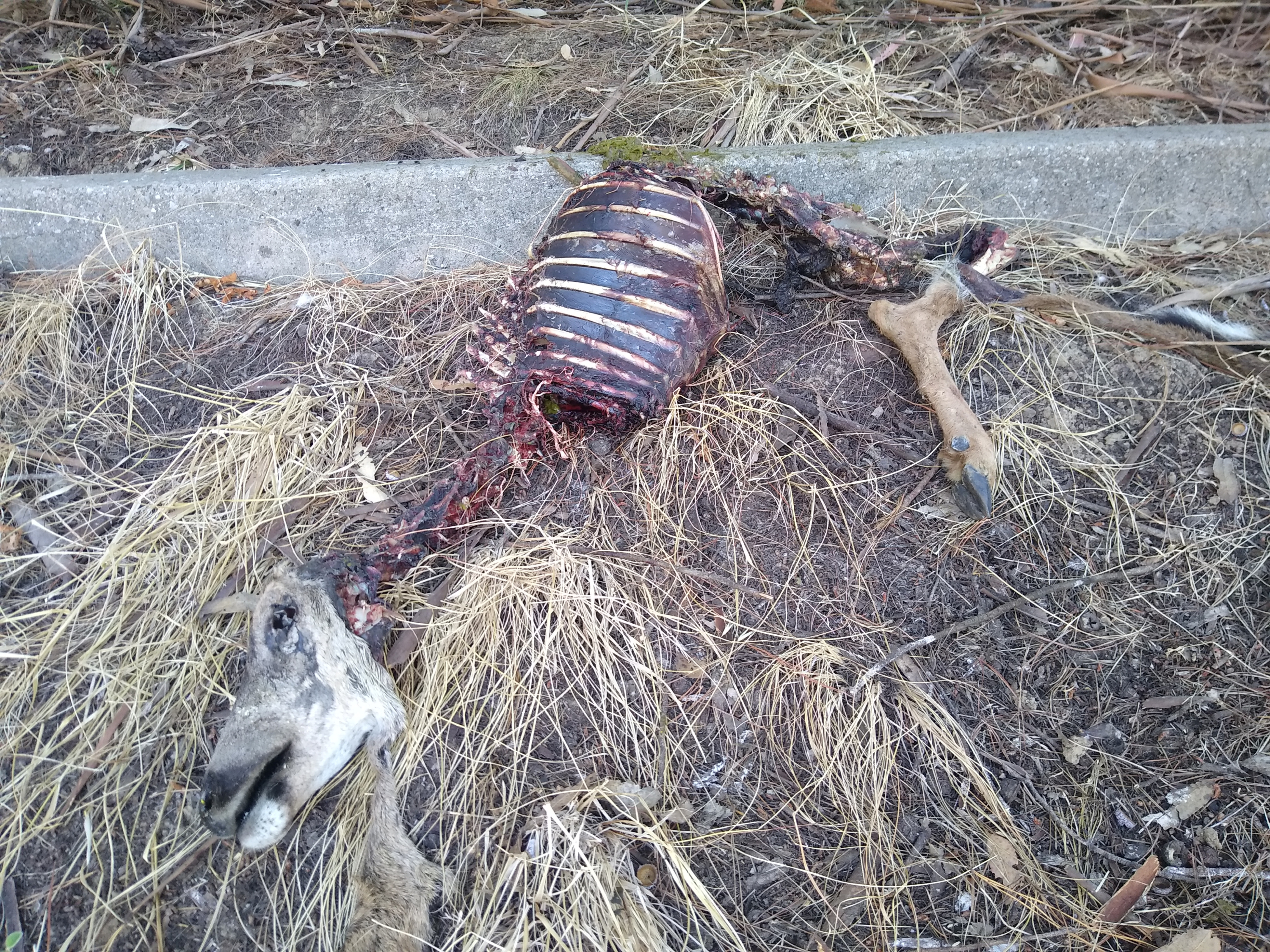 Deer carcass, that was being revisited nightly, with turney vultures during the day. Skeleton is still up there and sometimes has been moved