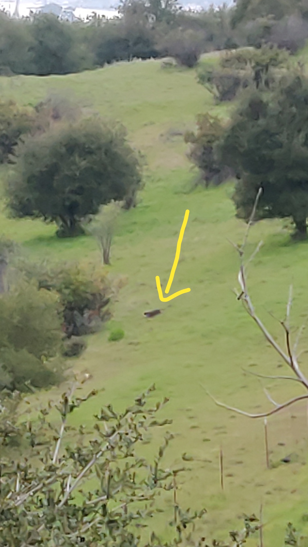 Walking in hills and valleys between neighborhood in Crockett....was about 300 yards from it but had binoculars