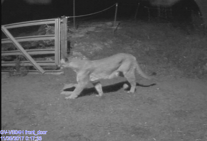 I live near the top of Blue Ridge Drive in Boulder Creek. I have seen Puma here at least 3 or 4 times in the 6 years I have lived here, including 2 times in the last month (possibly the same cat). I was in a converted garage on my property, and heard a noise outside on or about the end of November 2017/early December. I thought it was my roommate. I went out the door to look around the corner, and a puma halfway around the corner of the garage saw or heard me coming out the door and turned around and ran or trotted back down the hill after I called my roommates name. There is a gate there which is sometimes open which is access to Blue Ridge Dr. Knowing exactly what I had seen (and having encountered a female and three cubs twice (same family, the same week) in the upper (creek) trail in Villa Montalvo near the end of Norton Road about 12-13 years ago at only 20 feet away). I yelled loudly to scare the Puma on my property away (11/30/17). It was a large uncollared 2 to 3 year old male about 160 to 180+ pounds. About a week ago, I was coming home at a similar time of night (8:50PM or so), and I saw what could be the very same male crossing the street in plain view in front of my car (Xenon headlights). He did not appear scared of the vehicle, but picked up the pace a little so as to cross the road before I reached him. I'm almost certain this cat was also a mature young (160 to 180Lbs) male (and possibly the same cat). There is a creek that runs down the side of my property, and a damaged fence. Deer come on my property frequently to feed. A couple years back during winter there were obvious ML tracks on the side of the very same garage in the mud. And some are still there from what I believe to be only a month or two ago. I'm considering putting a game camera up. Definitely all mountain lions, though there are all kinds of other animals up here also (obviously). Have had a raccoon problem and possums and skunks specifically. Wasn't able to take a picture. Encounters far too short time wise.