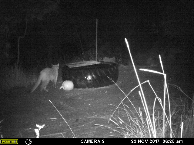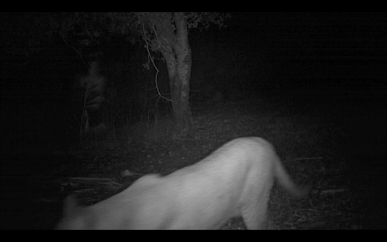 caught on trail cam, no collar, undetermined sex, fairly frequent visitor.