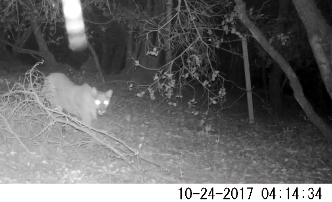 We checked our critter cam and saw a mountain lion right next to our house at around 6:30am on Sunday, October 15th, 2017.