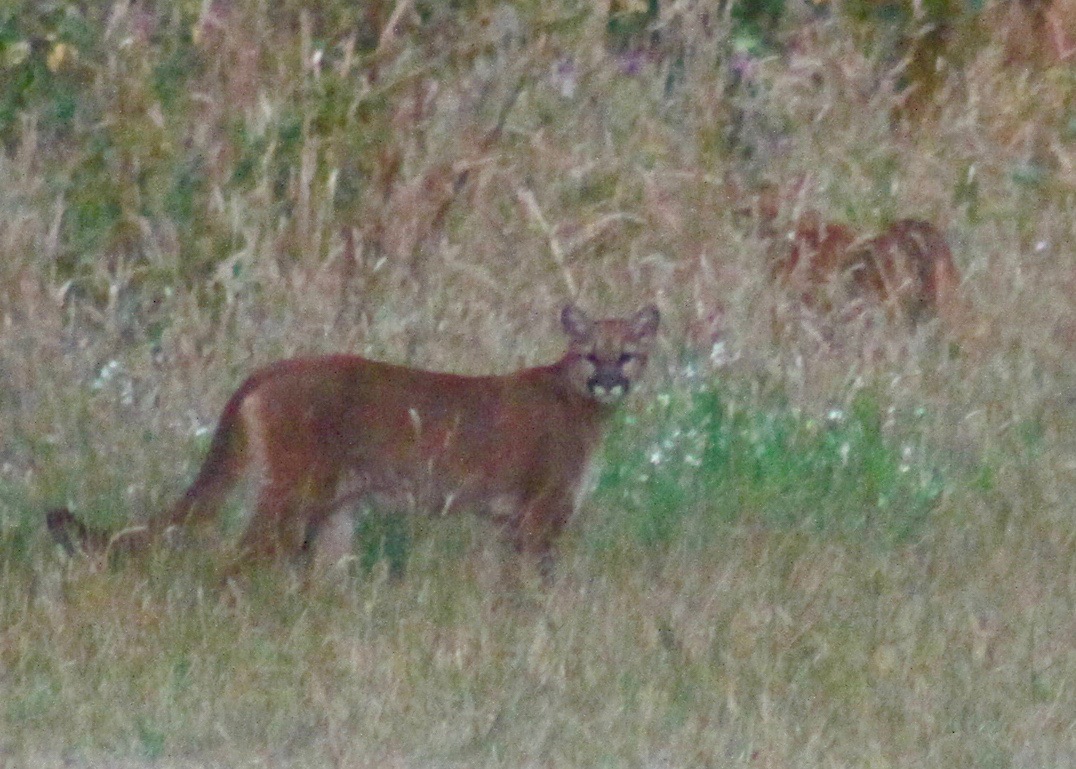 Saw a very large cat from my back deck across our back field, not sure if it was a mountain lion, but it sure looked like it.