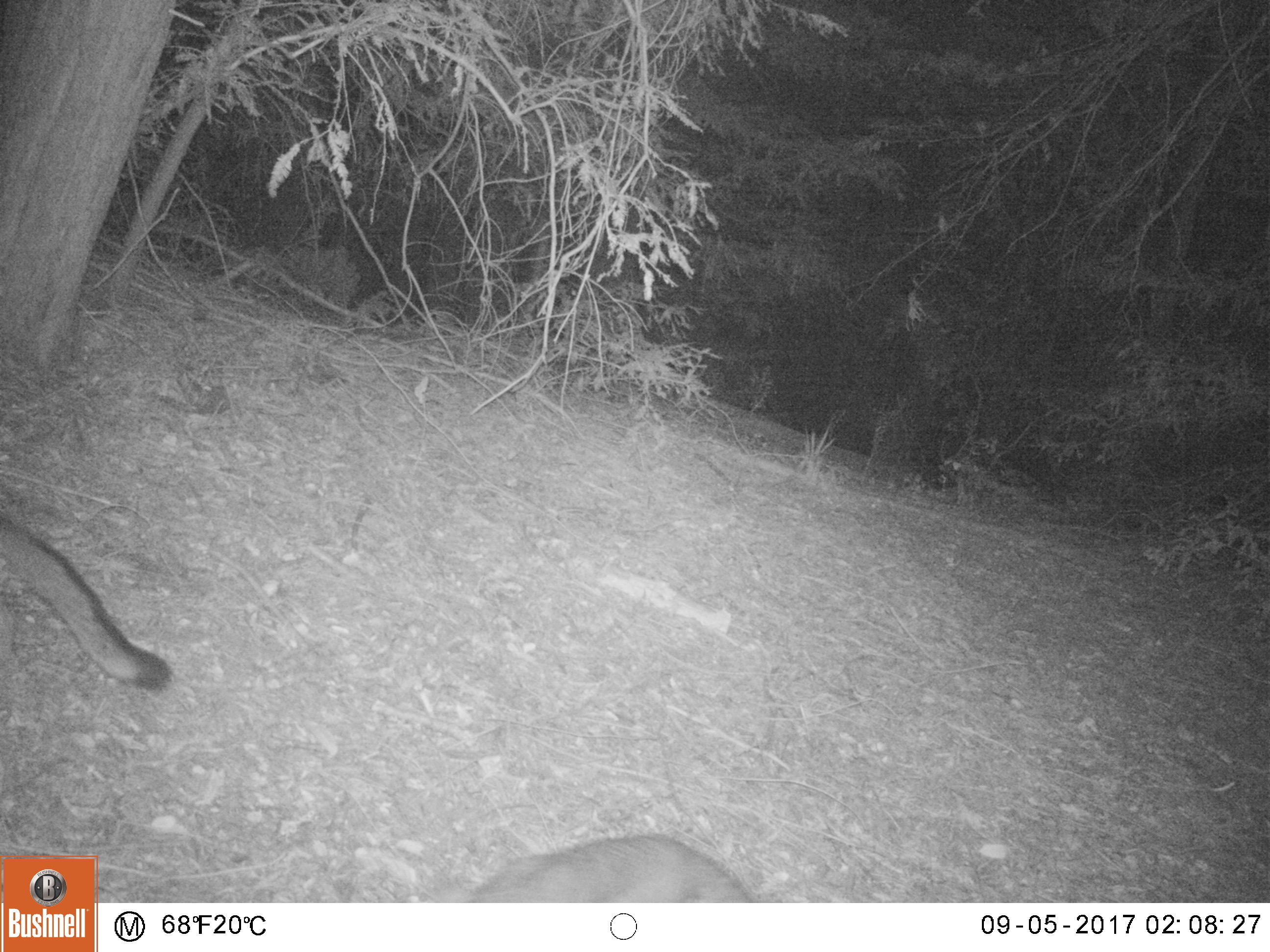 On the evening of 8/23/17, we caught the attached photos on our trail camera. The camera has been in place for almost two years with a variety of coyote, bobcats, fox, deer, etc. This was the first photos that we have captured of a mountain lion. It was successful with a raccoon (IMG 0077) and we have not seen it since. It does not appear to have a tracking collar. Our property (998 Gold Ridge Rd. Sebastopol - Camera location, Latitude 38.383361 "“ Longitude -122.860873) backs up to an upper feeder section of the Atascadero Creek and we get a good variety of wildlife but this was a first. It could be that it was just passing through and the photos last showed it moving to the west through the vineyard.