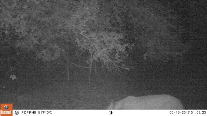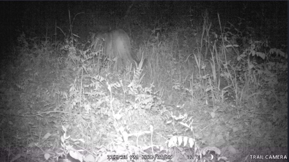 Trail camera capture; top half of puma