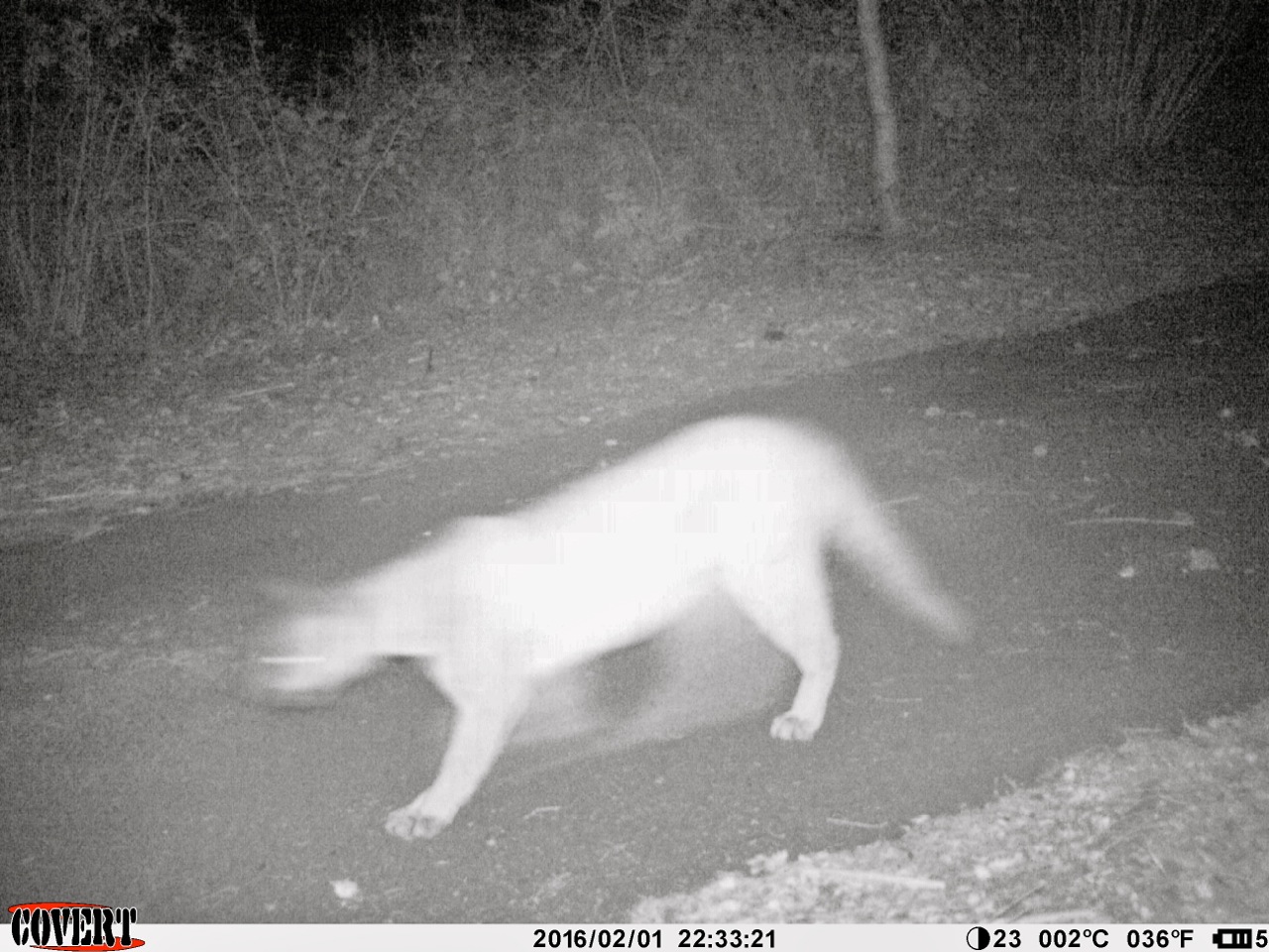 Photographed by camera trap; confirmed by body size comparison with other species photographed, including Bobcat, Coyote, Black Bear, Gray Fox, Wild Boar, Mule Deer, etc.