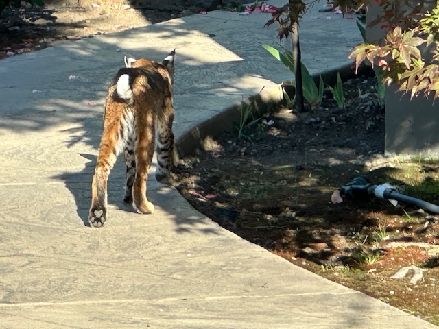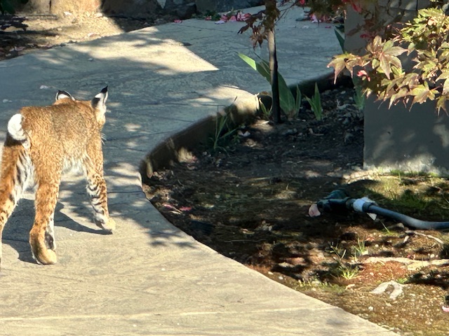 It was our first sighting of a bobcat here, but close neighbors have had sightings at their homes. One neighbor reports that 3 bobcats are "frequent visitors."
