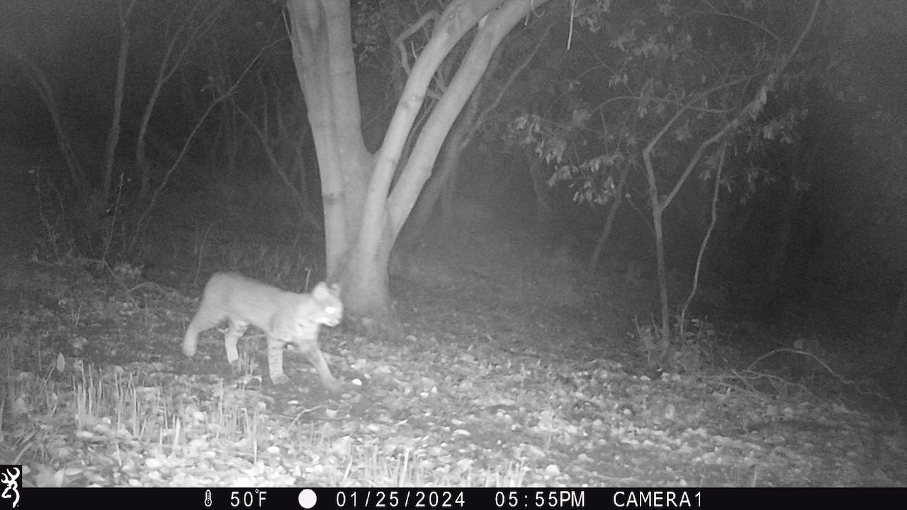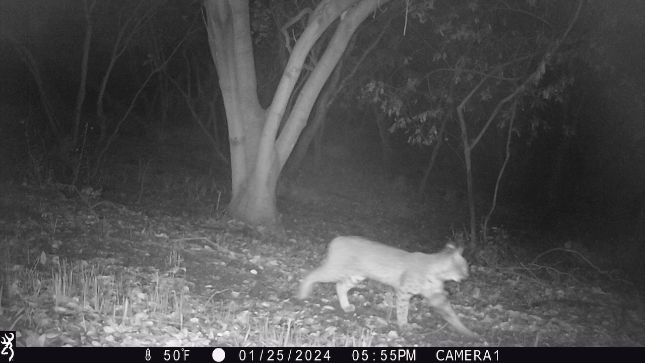 Bobcat seen on trail camera along property line of 470 Las Pulgas Drive, Woodside, CA