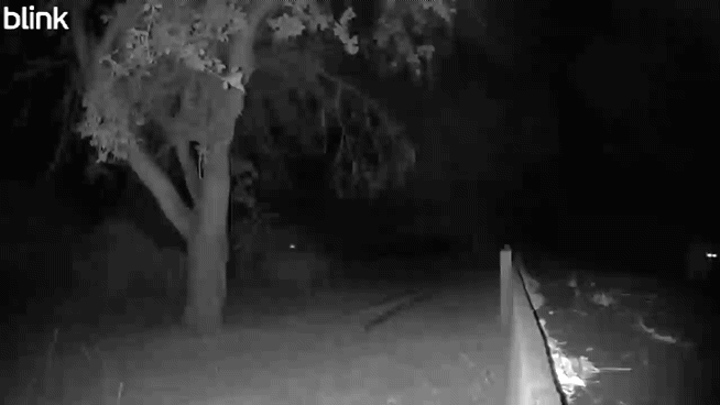 two deer are grazing in the backyard. the hear something so they freeze. then you hear heavy panting (the puma or the deer? i think it's the puma) and then the deer streak across the backyard. moments later you see the puma (watch for the eye glow) in the upper right corner of the frame. after a short pause, the puma walks around the other side of the house.